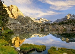 Puzzle: Jezioro, Góry, Skały, Trawa, Drzewa