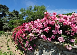 Puzzle: Ogród, Drzewa, Murek, Kwitnące, Krzewy, Różane