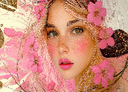 Puzzle: Modelka, Makijaż, Czerwone, Wino