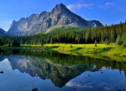 Puzzle: Letni Poranek, Góry, Las, Jezioro, Domy, Odbicie