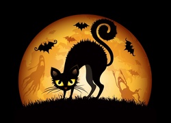 Puzzle: Kot, Nietoperze, Halloween, Grafika