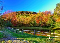 Puzzle: Jesień, Kolorowe, Drzewa, Jezioro