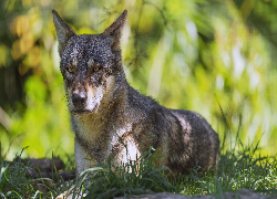 Puzzle: Grafika, Wilk, Dwa, Młode, Białe, Wilki, Rośliny