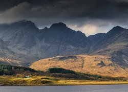 Puzzle: Góry, Ciemne, Chmury, Dom, Drzewa