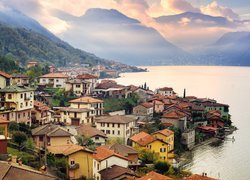 Puzzle: Jezioro Como, Miasto Como, Góry Alpy, Region Lombardia, Włochy, Domy
