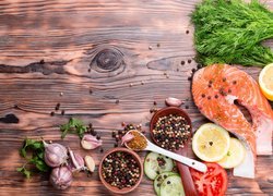 Puzzle: Ryba, Łosoś, Przyprawy, Pieprz, Czosnek, Koperek, Warzywa
