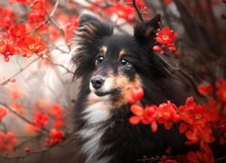 Puzzle: Pies, Owczarek szetlandzki, Czerwone, Kwiaty
