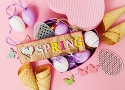 Puzzle: Pisanki, Wafelki, Pudełko, Napis, Spring, Wielkanoc