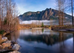 Puzzle: Rzeka, Lazy River, Góra, Mount Si, Jesień, Bezlistne, Drzewa, Stan Waszyngton, Stany Zjednoczone