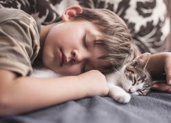 Puzzle: Śpiący, Chłopiec, Kotek