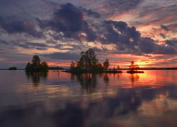 Puzzle: Jezioro Ala-Kitka, Zachód słońca, Chmury, Wysepka, Drzewa, Gmina Kuusamo, Ostrobotnia Północna, Finlandia
