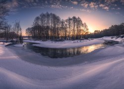 Puzzle: Zima, Rzeka Grabia, Śnieg, Drzewa, Województwo łódzkie, Polska
